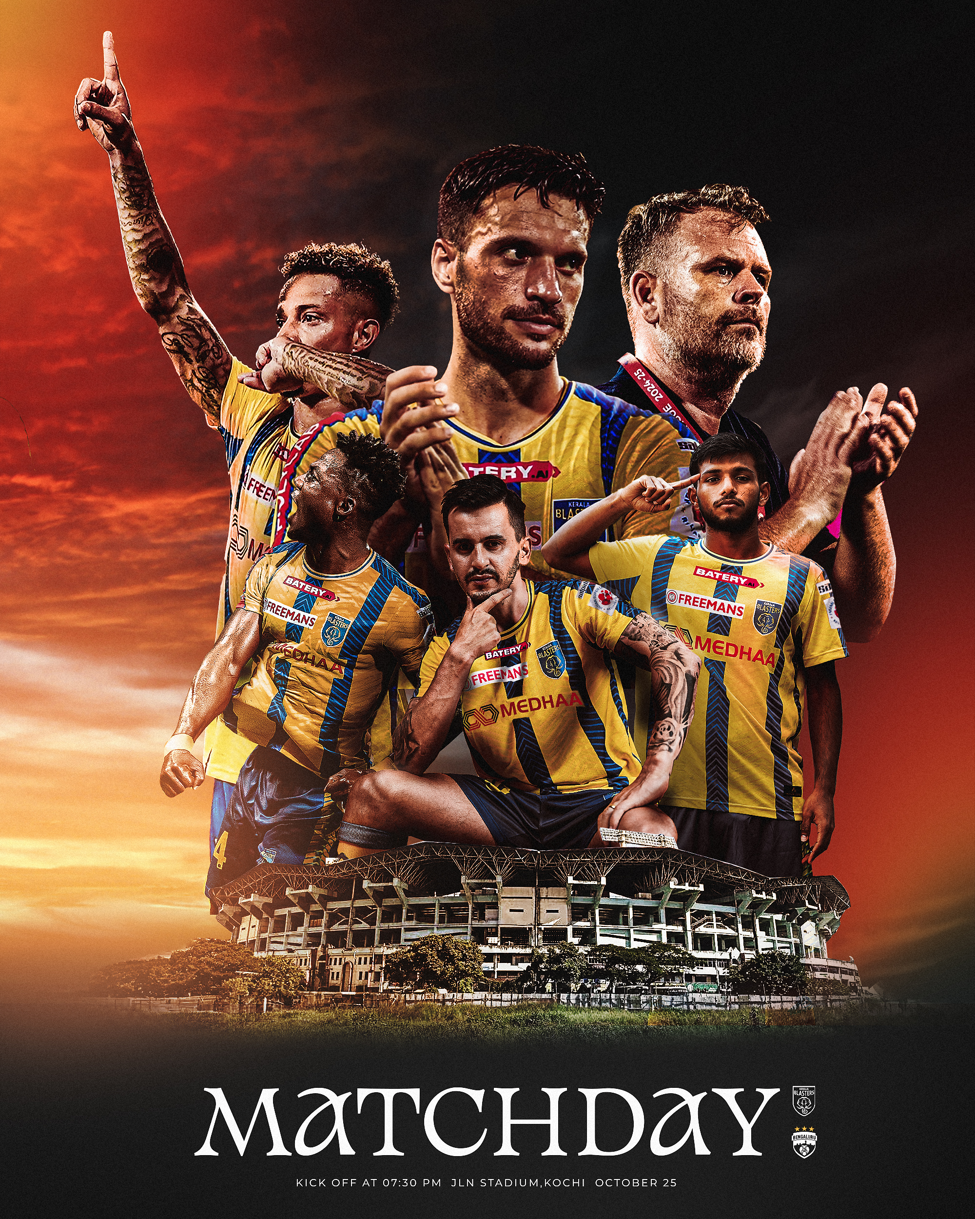The Southern Derby returns as Kerala Blasters FC lock horns with arch-rivals Bengaluru FC in what promises to be a thrilling Indian Super League encounter. The highly anticipated clash is set for 25th October 2024 at 7:30 PM IST at the Jawaharlal Nehru Stadium, Kochi. The Blasters will look to capitalise on home advantage and extend their winning run, adding further momentum to this season’s campaign.
